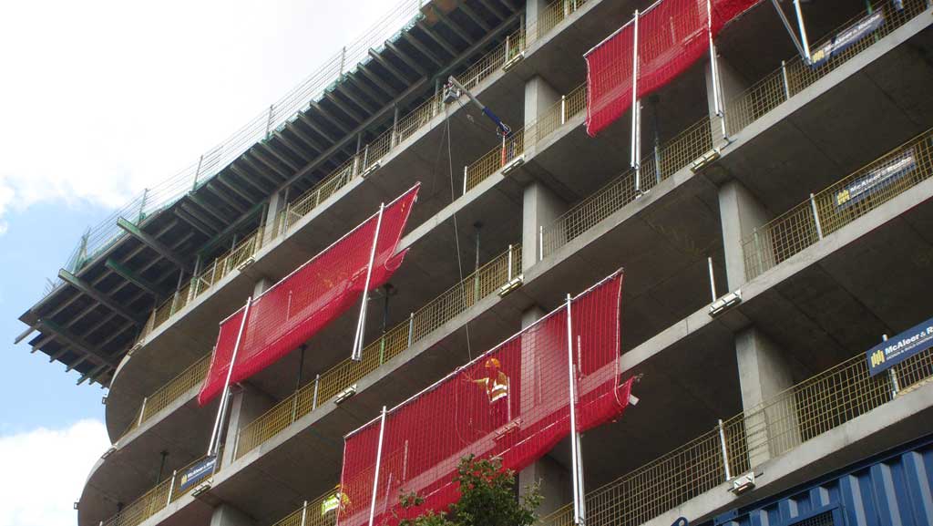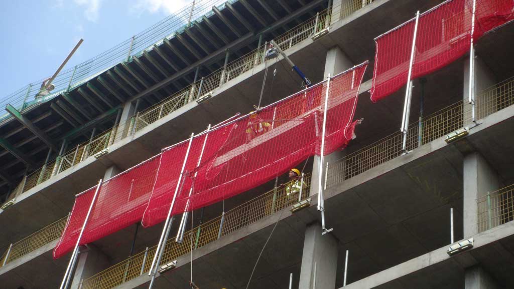 The Safety Net Fan performs several functions during the building process, not only forming an effective fall-arrest system for the workforce, but also protecting pedestrians and workers from falling objects and debris.